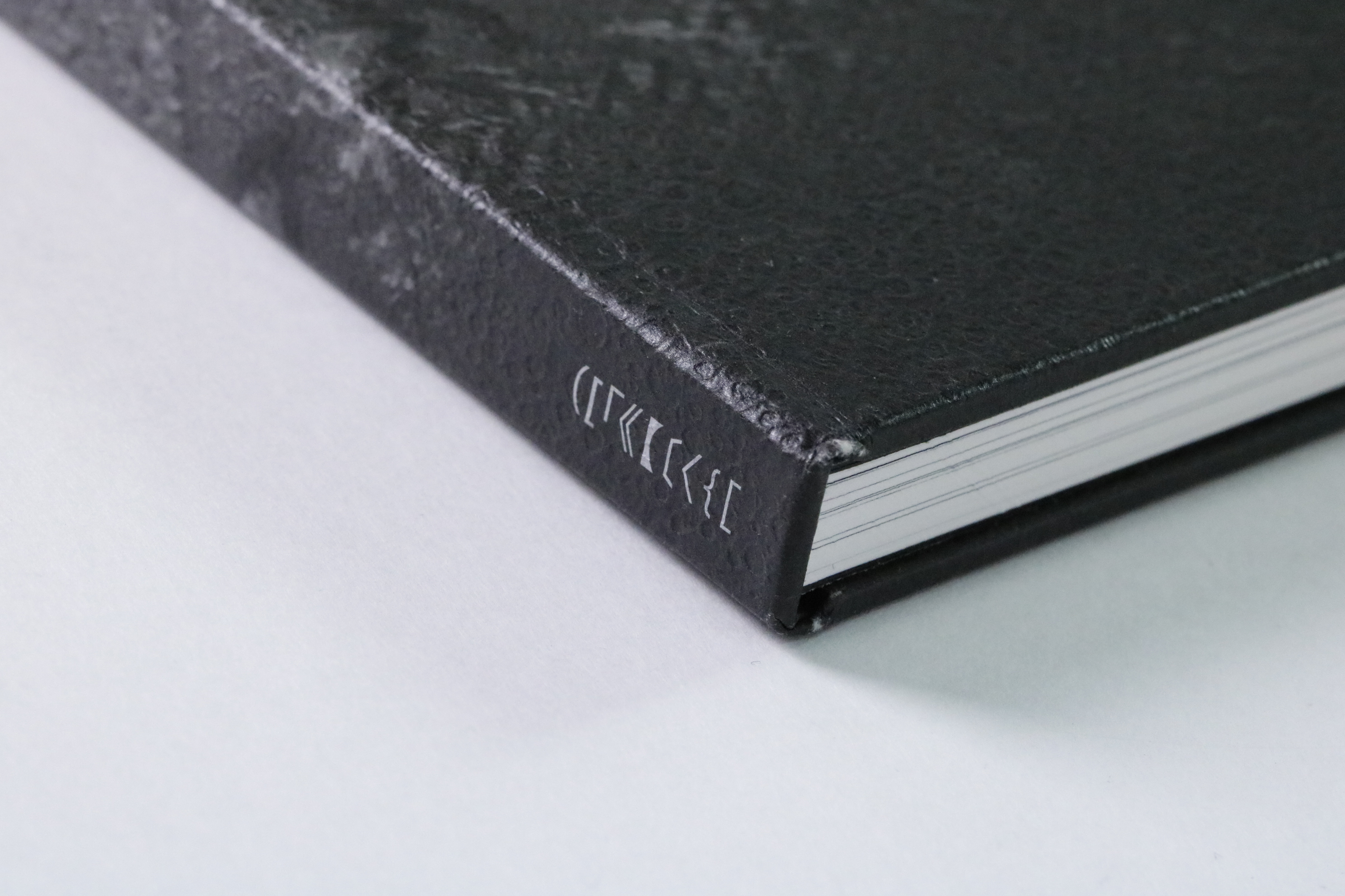 表紙は平和紙業の"かぐや”を使用。タイトルは箔押しに箔押しを重ねることで黒の箔が影のようになる効果を狙っています。