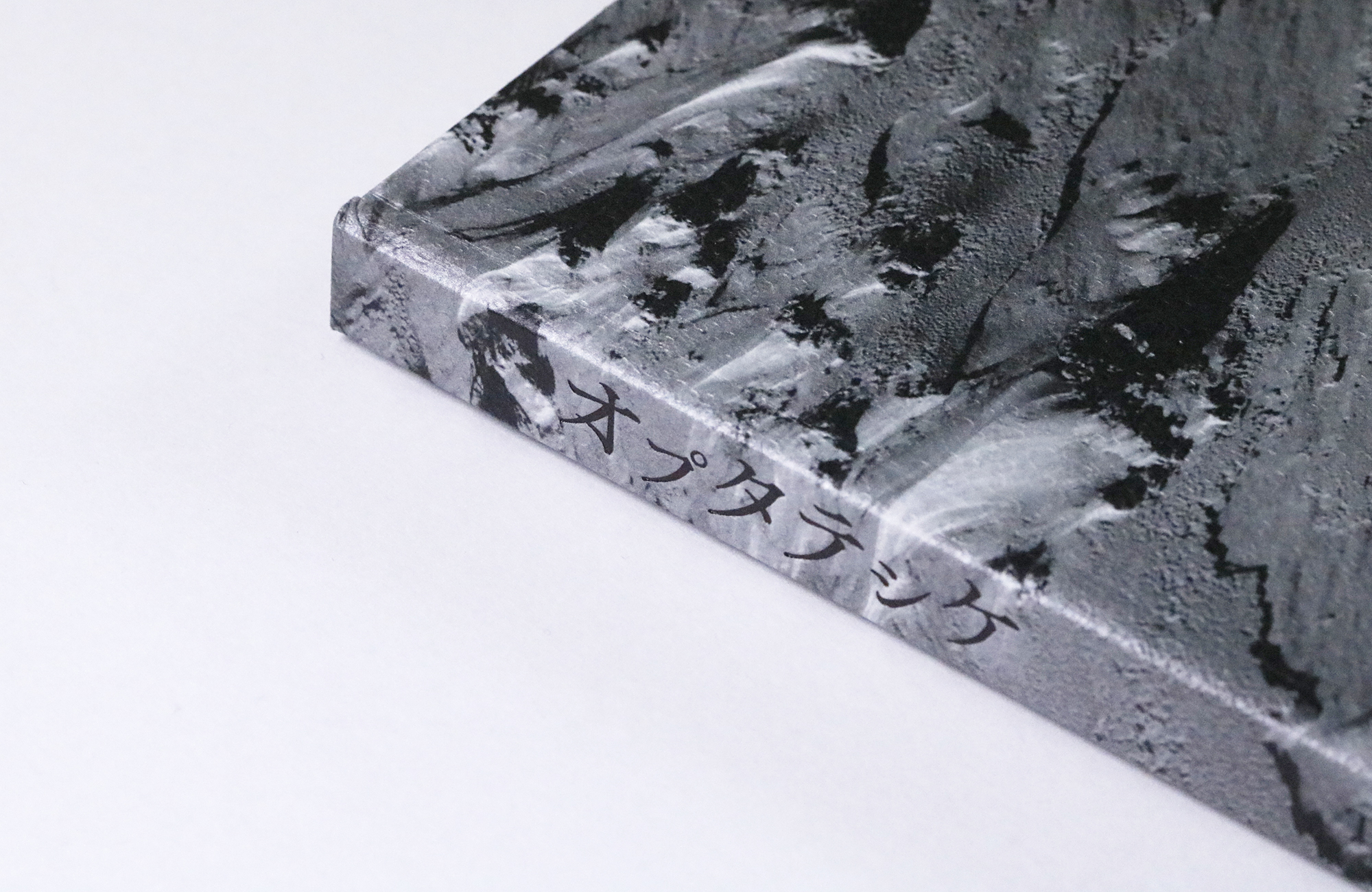 印刷には、この壮大なモクロームの宇宙のような世界観を表現するために、プリンティングディレクターのアイデアでシルバーインキを配合し繊細なトーンを表現しています。